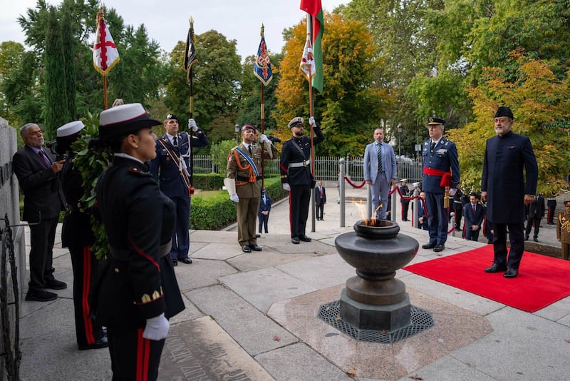 زار جلالةُ السُّلطان المُعظّم -حفظهُ اللهُ ورعاهُ- نصب الجندي المجهول في العاصمة الإسبانية مدريد كما تفضّل بوضع إكليلٍ من الزّهور