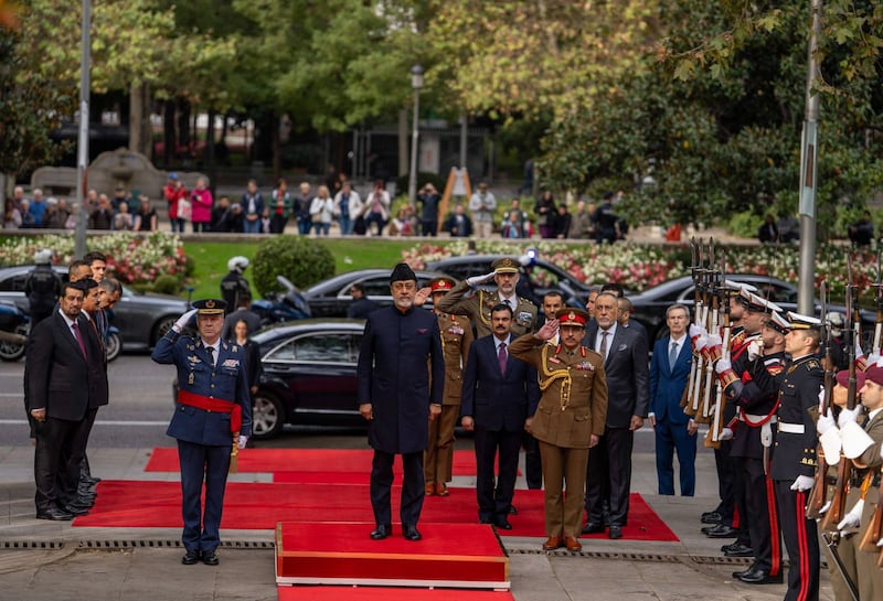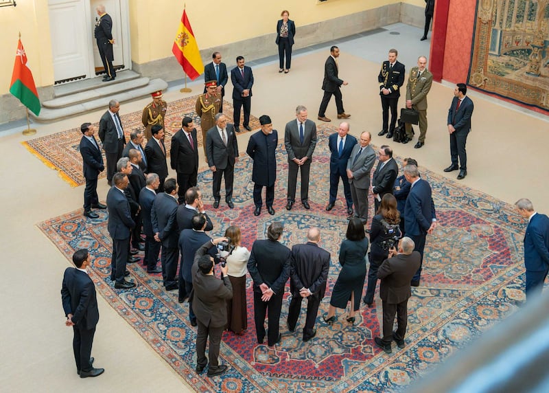 أُجريت لجلالةِ السُّلطان المعظّم -حفظهُ اللهُ ورعاهُ- مراسمُ استقبال رسميّةٌ بالقصر الملكي في مدريد. وكان في استقباله صاحبُ الجلالة الملك فيليبي السادس ملكُ إسبانيا وقرينتُه جلالةُ الملكة ليتيزيا. وبعد انتهاء مراسم الاستقبال، عقد جلالةُ السُّلطان وجلالةُ الملك لقاءً وديًّا خاصًّا بالقصر الملكي.