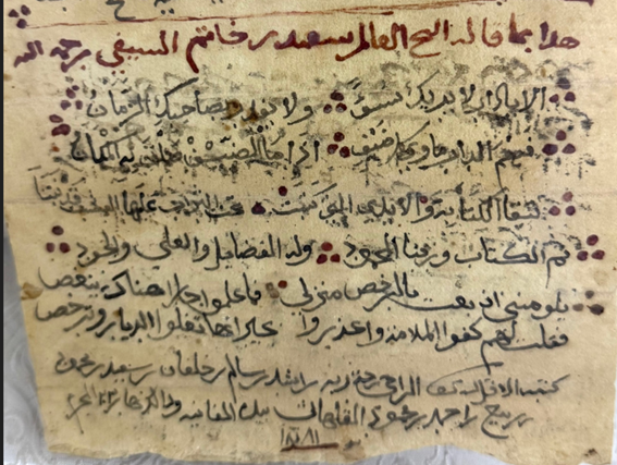 مصدر الوثيقة: أرشيف الفاضل عيسى بن صالح بن سلطان القلهاتي.