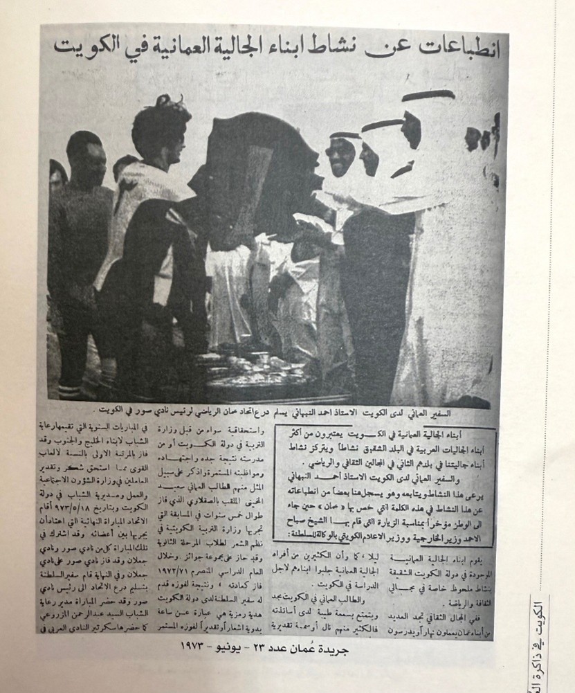 كما سلّط الباحث الضوء على ممارسة كرة القدم بين العُمانيين في الكويت، ودورها في تشكيل الوعي الرياضي الذي انتقل لاحقًا إلى سلطنة عُمان وأسهم في تأسيس الحركة الرياضية الحديثة.