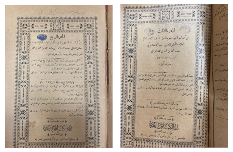 ومن بين ما اقتناه النوخذة عبد الله الرزيقي الجزآن الثالث والرابع من كتاب “إحياء علوم الدين” للإمام أبو حامد الغزالي، وهو من أشهر كتب الوعظ والتزكية والتصوف في التراث الإسلامي.